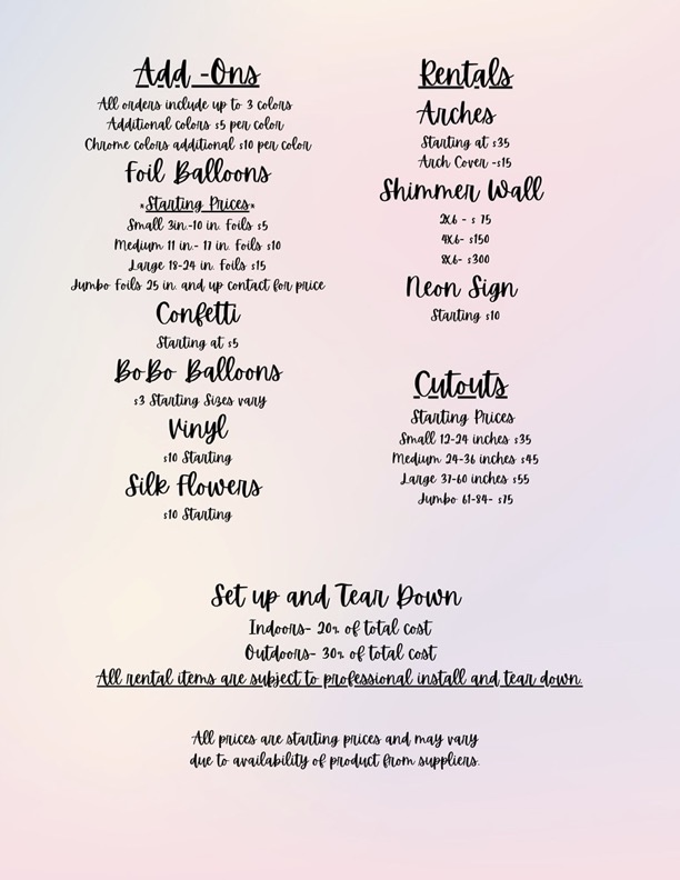 Welcome to your next event. These are just a few examples of our growing gallery of products. Each special event will be designed with your vision in mind. Please email me today so we can put together a quote for your next memorable event.